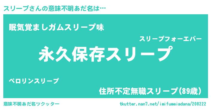 | 胡散臭い通販商品みたいなあだ名 | 『絶対に幸福をもたらす水素水…その名も「スリープ」』 |