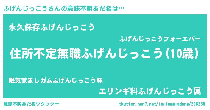 | ヘコむあだ名 | 『ふげんじっこう(笑)』『酢こんぶ』 |