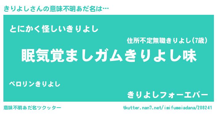 | 欧米人風あだ名 | 『ダニエルきりよし』『ウサインきりよし』 |