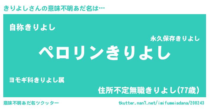 | ヘコむあだ名 | 『きりにー』『きりよし(苦笑)』 |