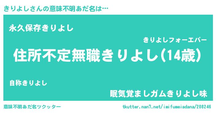 | ヘコむあだ名 | 『きりよし(笑)』『なまこ酢』 |