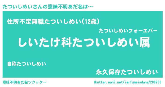 | ヘコむあだ名 | 『たついしめい(笑)』『なまこ酢』 |