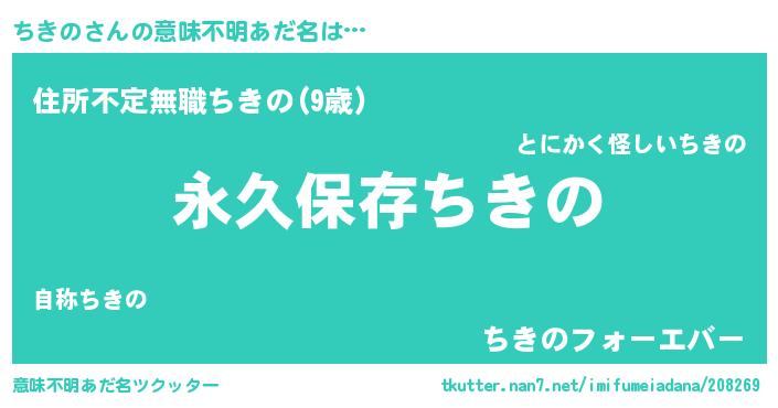 | ヘコむあだ名 | 『ちきの(笑)』『豆乳』『ちきぷりん』 |