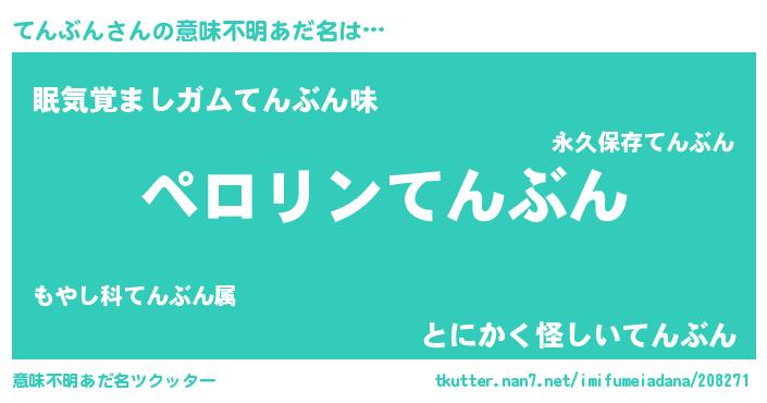 | ヘコむあだ名 | 『てんにー』『てんっぺ』『酢こんぶ』 |