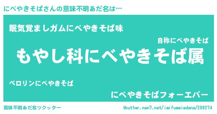 | 欧米人風あだ名 | 『トリンドルにべやきそば』 |