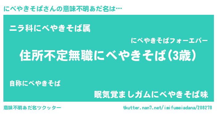 | 胡散臭い通販商品みたいなあだ名 | 『世界中を虜にした100年もののヴィンテージワイン…その名も「にべやきそば」』 |