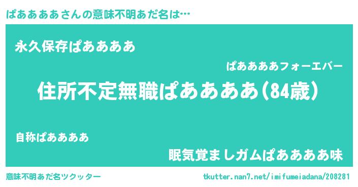 | ヒーロー風カッコイイあだ名 | 『仮面パアダー』『ネオパアアアア』 |
