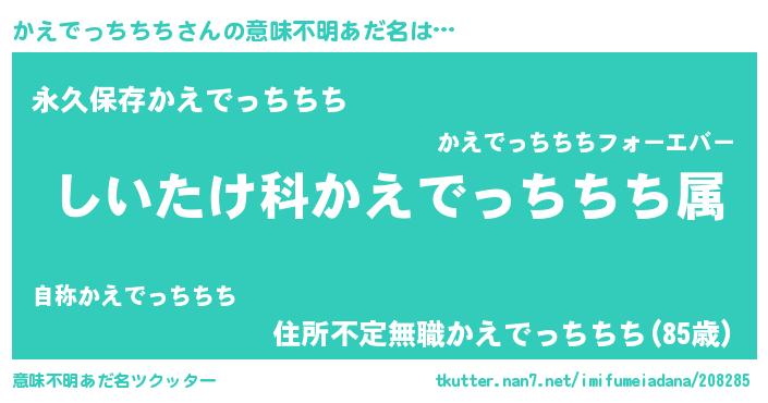 | 欧米人風あだ名 | 『かえでっちちち・ステッグマイヤー』 |