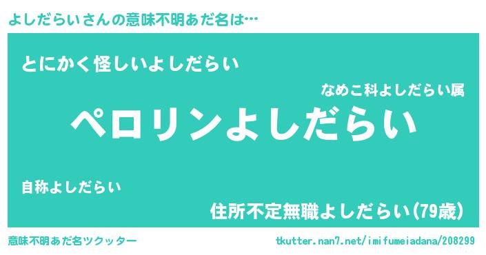 | 男性向けラノベタイトル風あだ名 | 『ヨシダライアートオンライン』 |