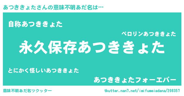 | 欧米人風あだ名 | 『あつききょた・ステッグマイヤー』 |