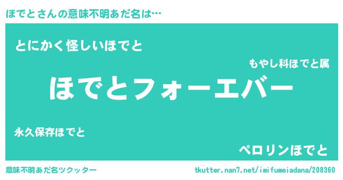 | 胡散臭い通販商品みたいなあだ名 | 『運命の人と巡り会える高級そうな壺…その名も「ほでと」』 |