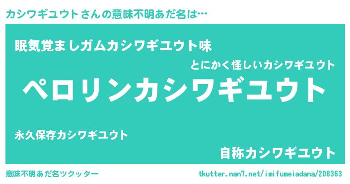 | 胡散臭い通販商品みたいなあだ名 | 『必ず成功するブレスレット…その名も「カシワギユウト」』 |