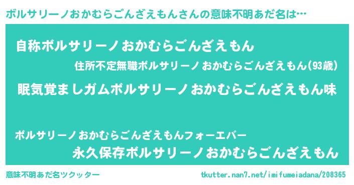 | 胡散臭い通販商品みたいなあだ名 | 『モンドセレクションを受賞したイリジウム磁石…その名も「ボルサリーノおかむらごんざえもん」』 |
