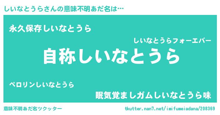 | ヘコむあだ名 | 『しいなとうら(苦笑)』『豆乳』 |