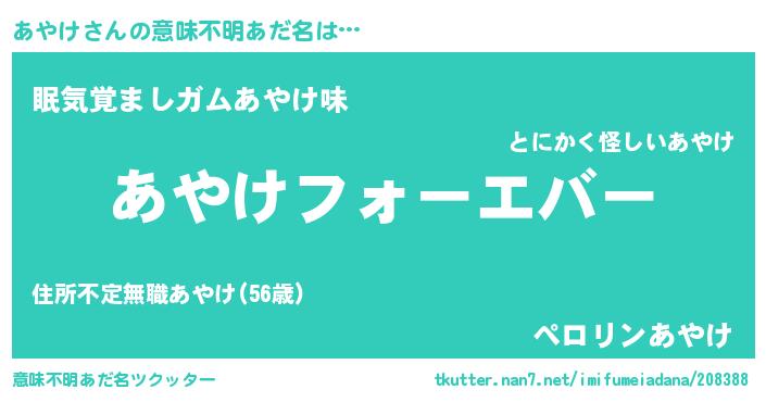 | 欧米人風あだ名 | 『アンジェラ・あやけ』『ダニエルあやけ』 |