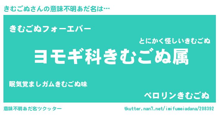 | 男性向けラノベタイトル風あだ名 | 『きむごぬ~年齢イコール彼女いない歴の魔法使い~』 |