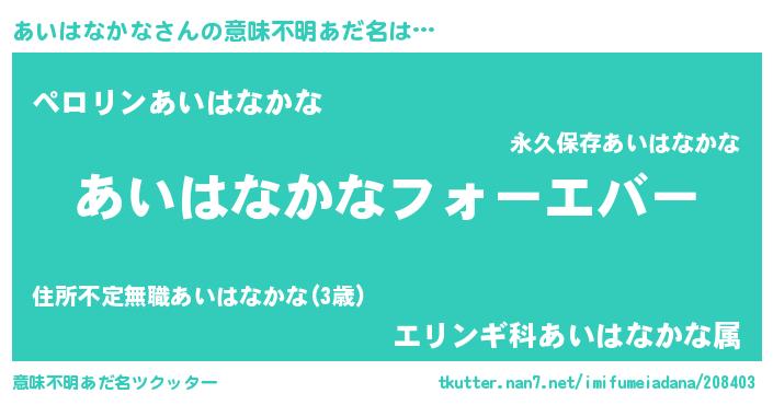 | ファンタジー風あだ名 | 『エターナルアイハナカナー』 |