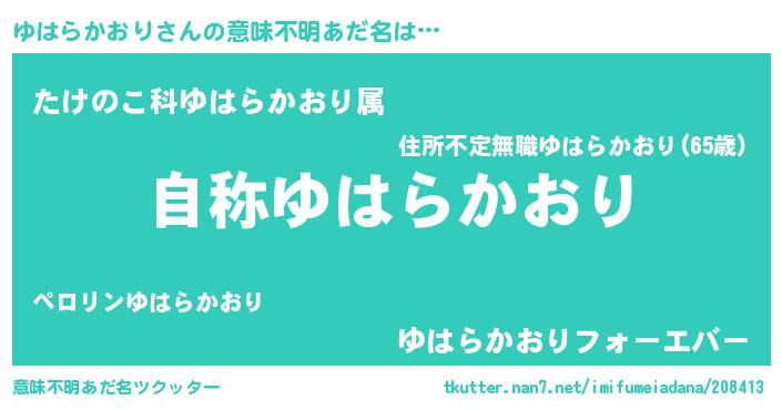 | 男性向けラノベタイトル風あだ名 | 『Re:ゆはらかおりから始める異世界生活』 |