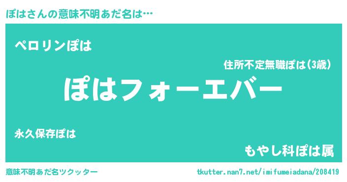 | ヘコむあだ名 | 『なまこ酢』『ぽはにー』『ぽは(笑)』 |