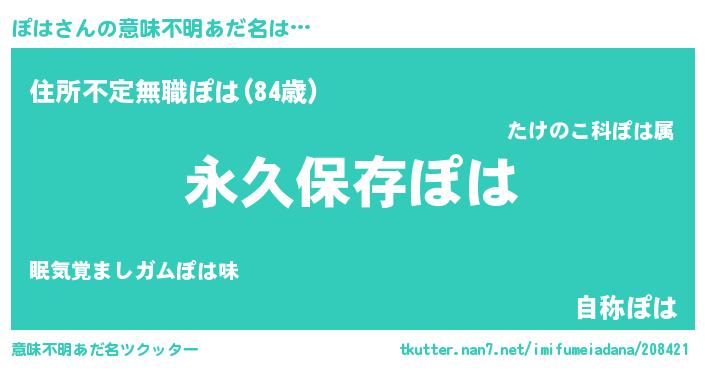 | 胡散臭い通販商品みたいなあだ名 | 『来世でも幸せになれる健康食品…その名も「ぽは」』 |