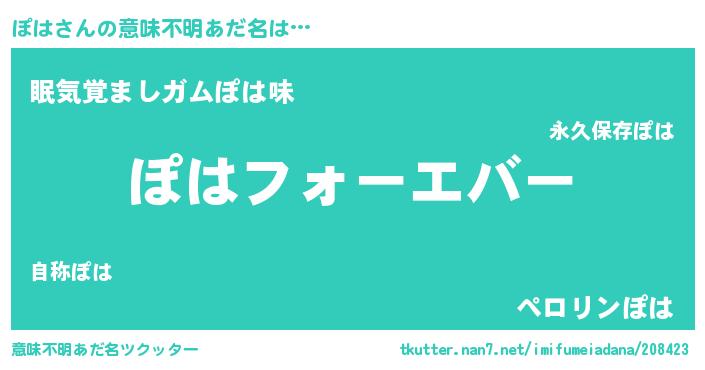 | 2回繰り返すあだ名 | 『ぽぽはは』『ぽつぽつ』『ぽはぽは』 |