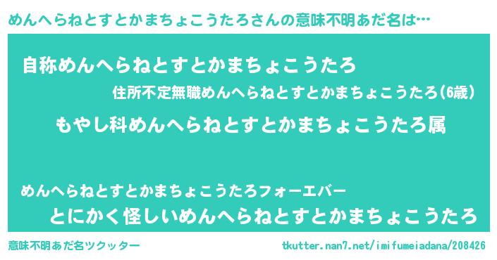 | 欧米人風あだ名 | 『トリンドルめんへらねとすとかまちょこうたろ』 |