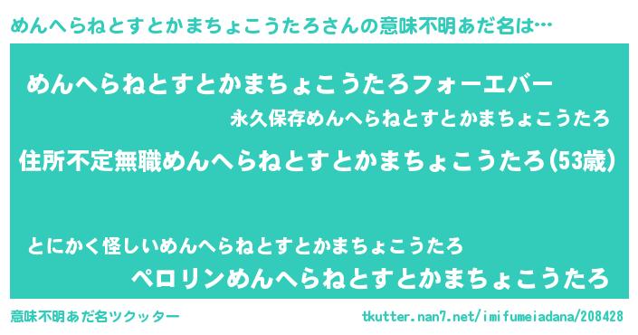 | 欧米人風あだ名 | 『ダレノガレめんへらねとすとかまちょこうたろ』 |