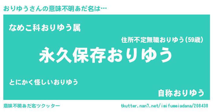 | 男性向けラノベタイトル風あだ名 | 『おりゆうという概念が存在しない退屈な世界 』 |