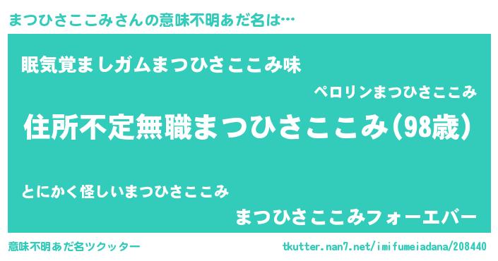 | 男性向けラノベタイトル風あだ名 | 『この素晴らしい世界にまつひさここみを!』 |