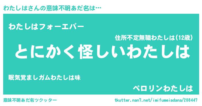 | ポケモン風あだ名 | 『ヒワタシハ』『ワタシダネ』 |