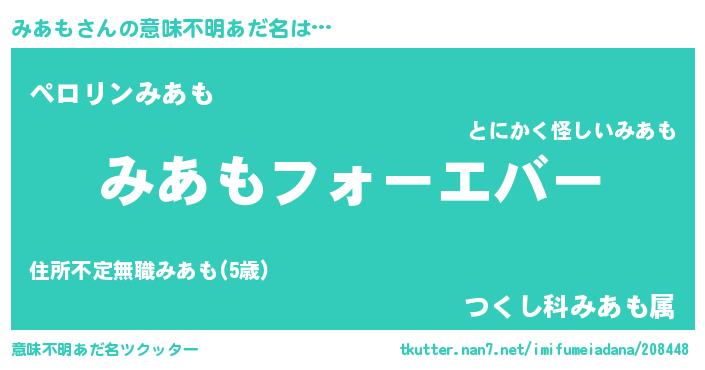 | 欧米人風あだ名 | 『みあもクリステル』『マイケルみあも』 |