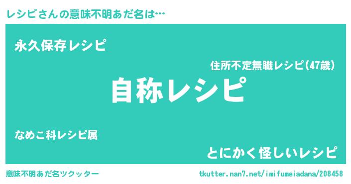 | ヘコむあだ名 | 『レシピ(笑)』『レシっぺ』『つくし』 |