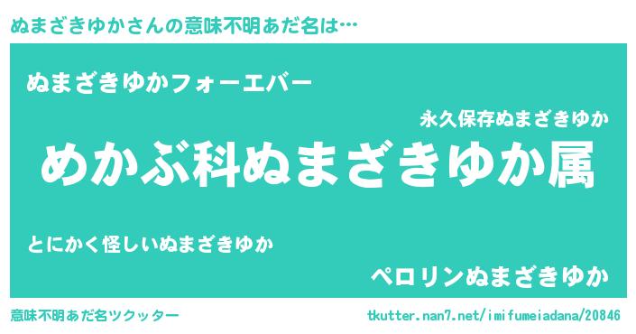 | ヒーロー風カッコイイあだ名 | 『ウルトラぬまざきゆかマン』 |