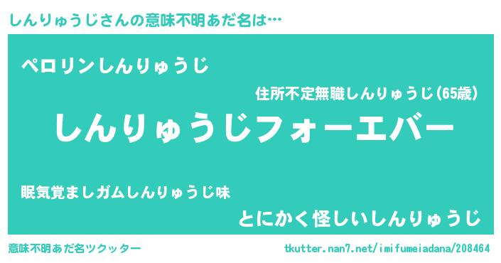 | 男性向けラノベタイトル風あだ名 | 『うちのしんりゅうじが世界を掌握している!』 |