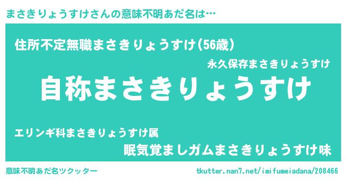 | ヘコむあだ名 | 『まさきりょうすけ(苦笑)』『まさっぺ』 |
