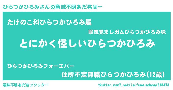 | ポケモン風あだ名 | 『メロヒッラ』『ヒヒラツカヒロミ』 |