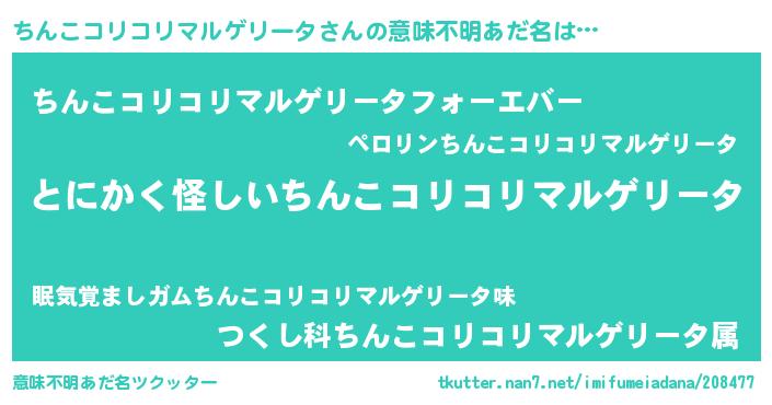 | 胡散臭い通販商品みたいなあだ名 | 『伝統あるサプリメント…その名も「ちんこコリコリマルゲリータ」』 |