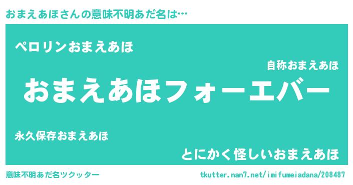 | ファンタジー風あだ名 | 『エターナルオマエアホー』『オマフェル』 |