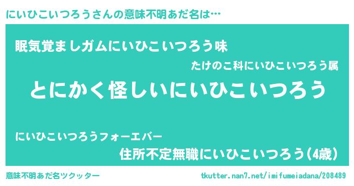 | ポケモン風あだ名 | 『ヒニイヒコイツロウ』『メロニッイ』 |