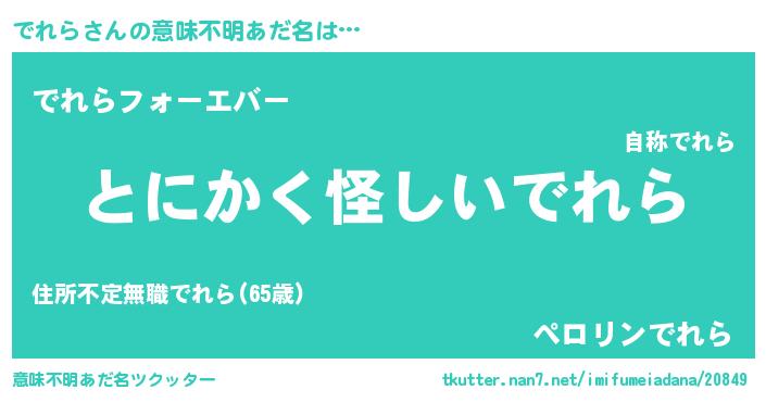 | 女子向けラノベタイトル風あだ名 | 『でれら様がみてる』『でれら伯爵の花嫁』 |