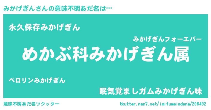 | 胡散臭い通販商品みたいなあだ名 | 『絶対に幸福をもたらす水素水…その名も「みかげぎん」』 |