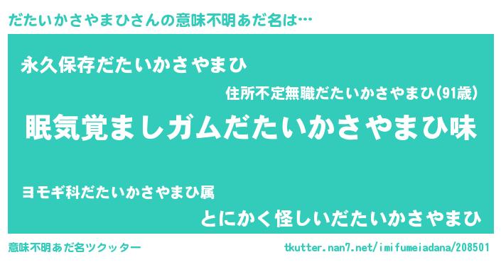 | ヒーロー風カッコイイあだ名 | 『正義の使者だたいかさやまひ』 |