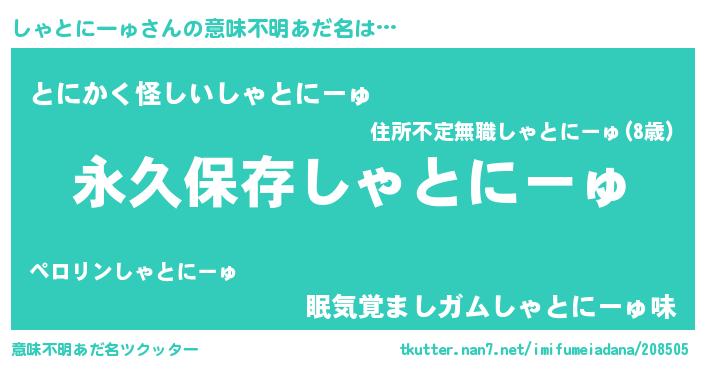 | 胡散臭い通販商品みたいなあだ名 | 『来世でも幸せになれる健康食品…その名も「しゃとにーゅ」』 |