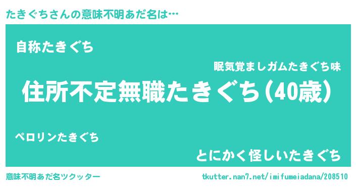 | ピコ太郎風あだ名 | 『タキ二郎』『タタ太郎』『タコ史郎』 |