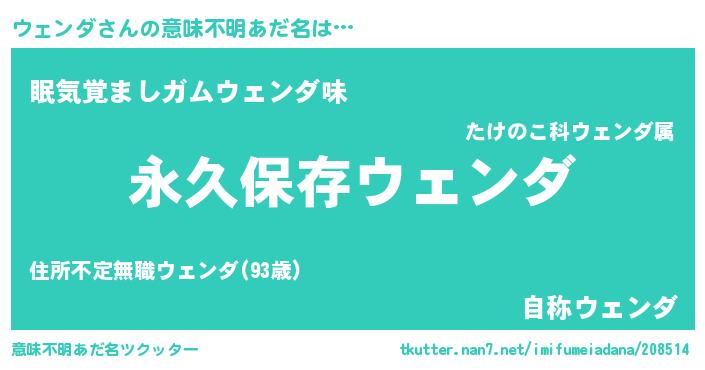 | ヘコむあだ名 | 『ウェンダ(爆)』『ウェを』『豆乳』 |