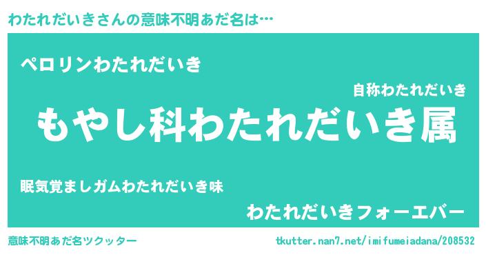 | 欧米人風あだ名 | 『わたれだいき・ステッグマイヤー』 |