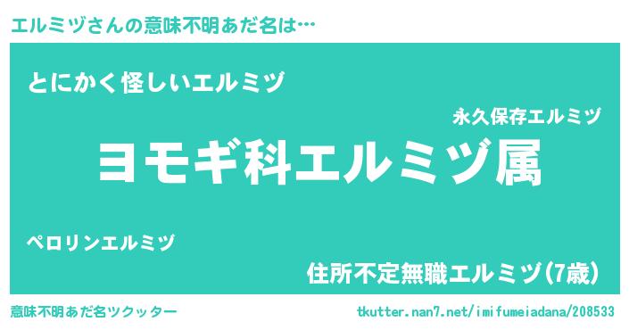 | 欧米人風あだ名 | 『トリンドルエルミヅ』 |