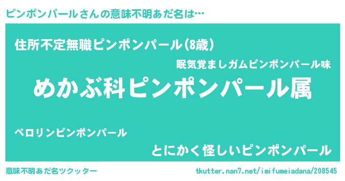 | 男性向けラノベタイトル風あだ名 | 『ピンポンパールスレイヤー』 |