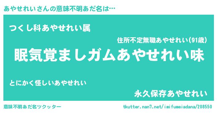 | ヘコむあだ名 | 『あやせれい(笑)』『あやっ子』 |