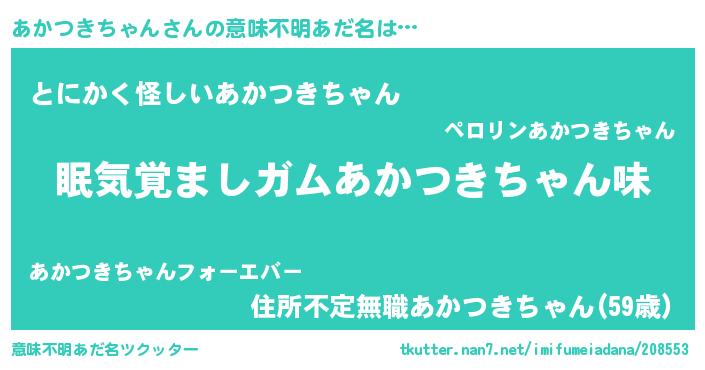 | 欧米人風あだ名 | 『ダニエルあかつきちゃん』 |